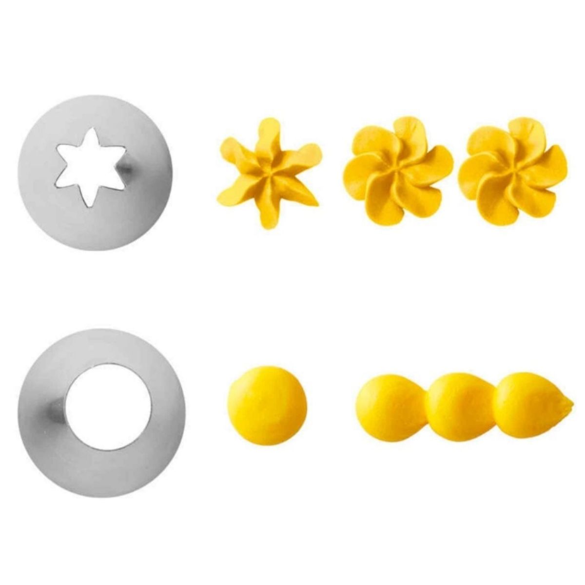 The kit comes with tips 1M and 1A. But the coupler also works with tips 4B from Wilton (sold separately).