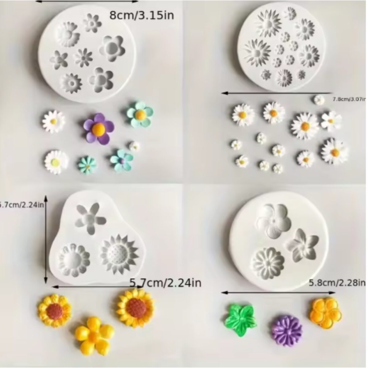 4 Pcs Daisy & Flower Silicone Mold