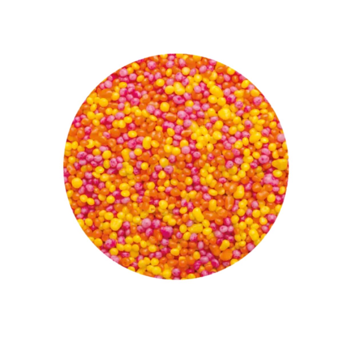 Crunchy Beads Mini Mix Coloured Microspheres is tiny, colorful, crunchy beads that add a playful texture and vibrant decoration to your desserts, cakes, and confectionery creations.Ingredients Sugar, extruded cereal: ( rice flour,wheat flour, sugar, barley malt extract, salt ),vegetable fats (palm kernel, palm), wheat starch, polishing agents: ( arabic gum (E 414), shellac (E904)), cocoa butter, carminio (E 120), paprika extract(E 160 C), curcumin (E100).