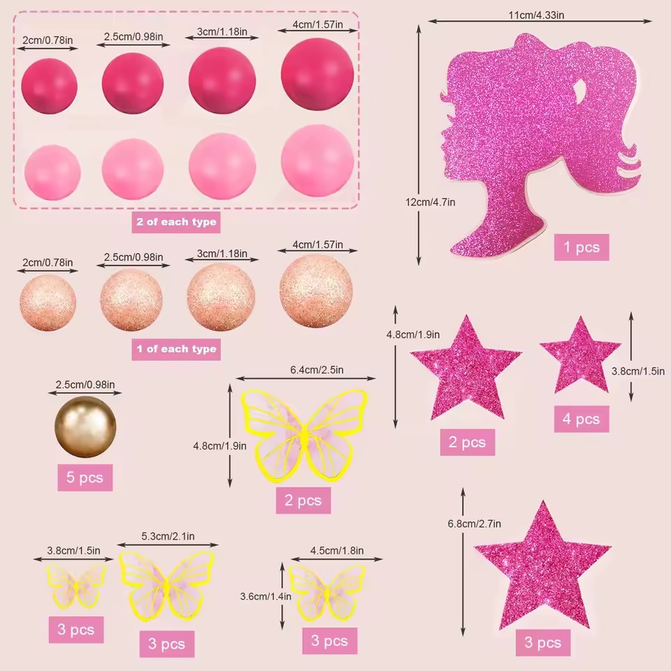 Pink Glitter Cake Topper Set – Silhouette, Star, Ball & Butterfly Birthday Party Decoration Supplies 46 Pcs Set