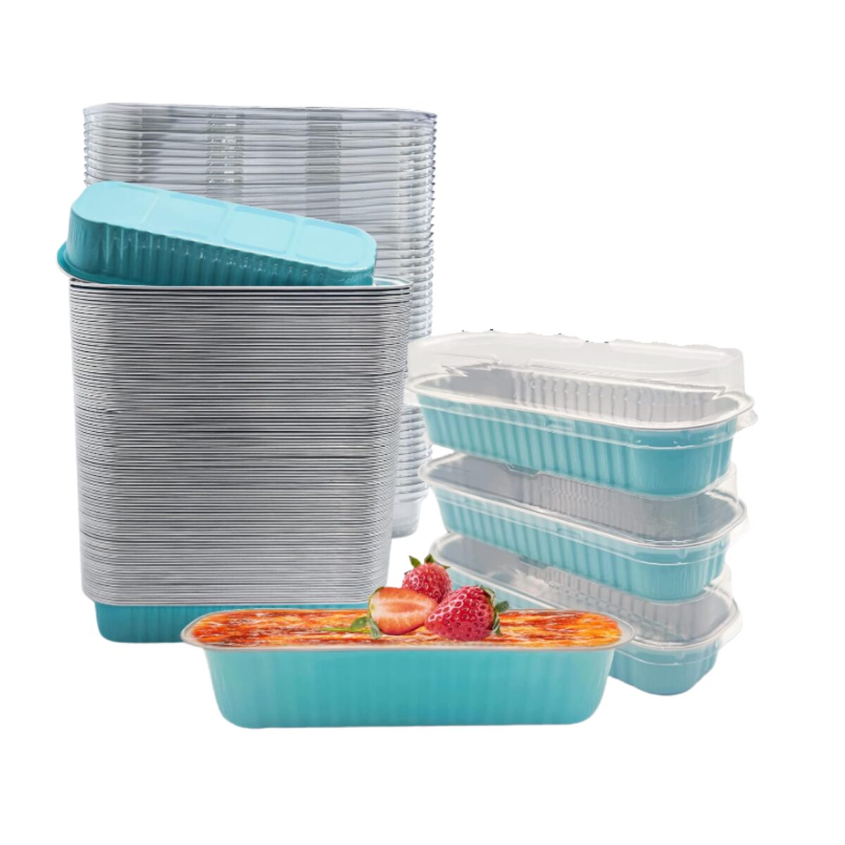 Rectangle Aluminum Mini Loaf Baking Pan with Lid Light Blue
