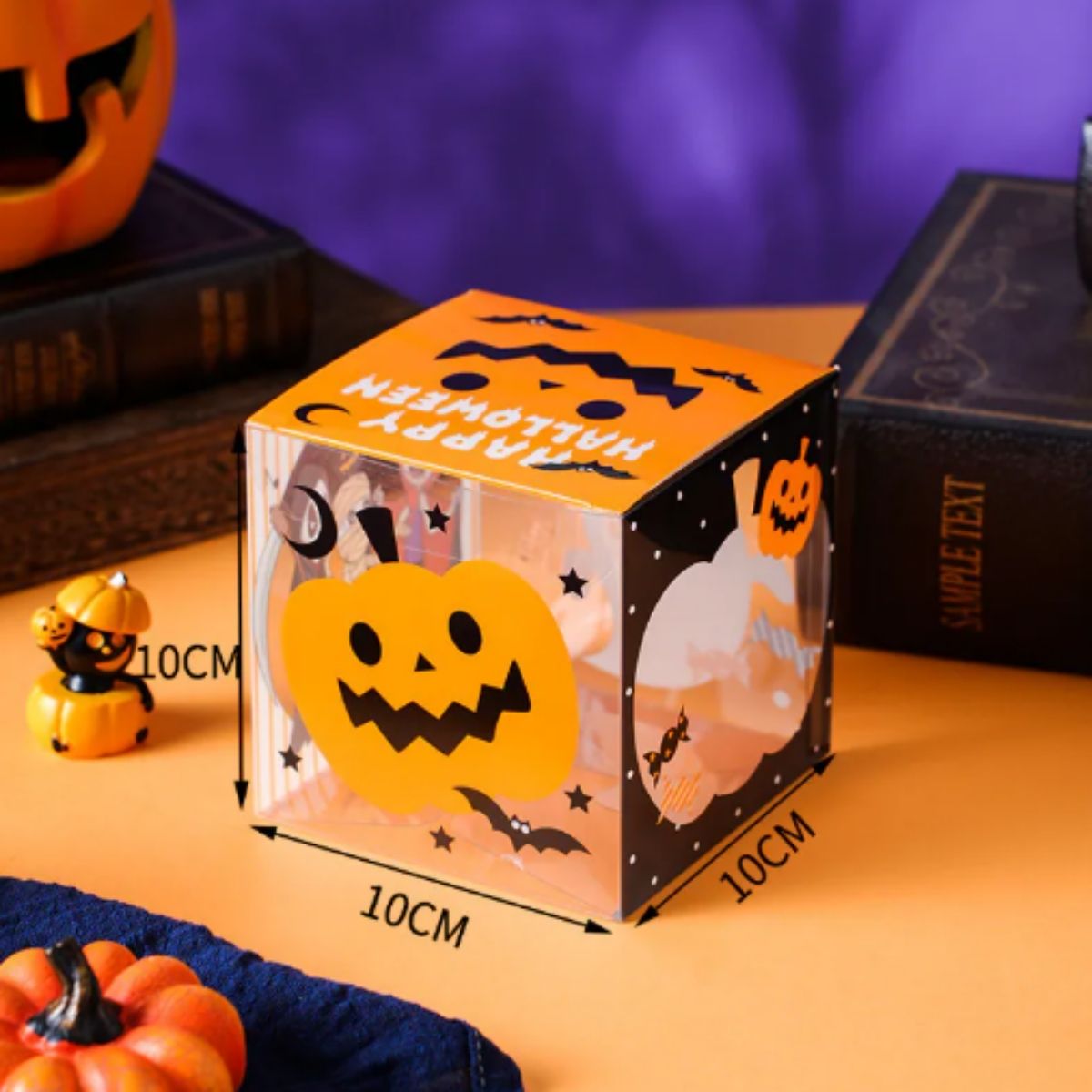 Crafted from durable, food-safe material, this cupcake box ensures your treats remain fresh and protected during transport and display. The clear sides offer an enticing peek at the delicious contents, while the festive Halloween prints add an instant celebratory touch, making each gift or sale feel extra special. With its compact dimensions of approximately 10cm×10cm×10cm (as indicated in the image), it’s perfectly sized for a single standard cupcake, a small handful of candies, or a miniature party favor.